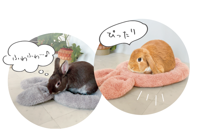 うさぎぴったりクッションは、うさぎの体ぴったりサイズで、周りを囲われているため、うさぎがすっぽり囲われるのでリラックスしやすい状態を作ってくれるクッションです。