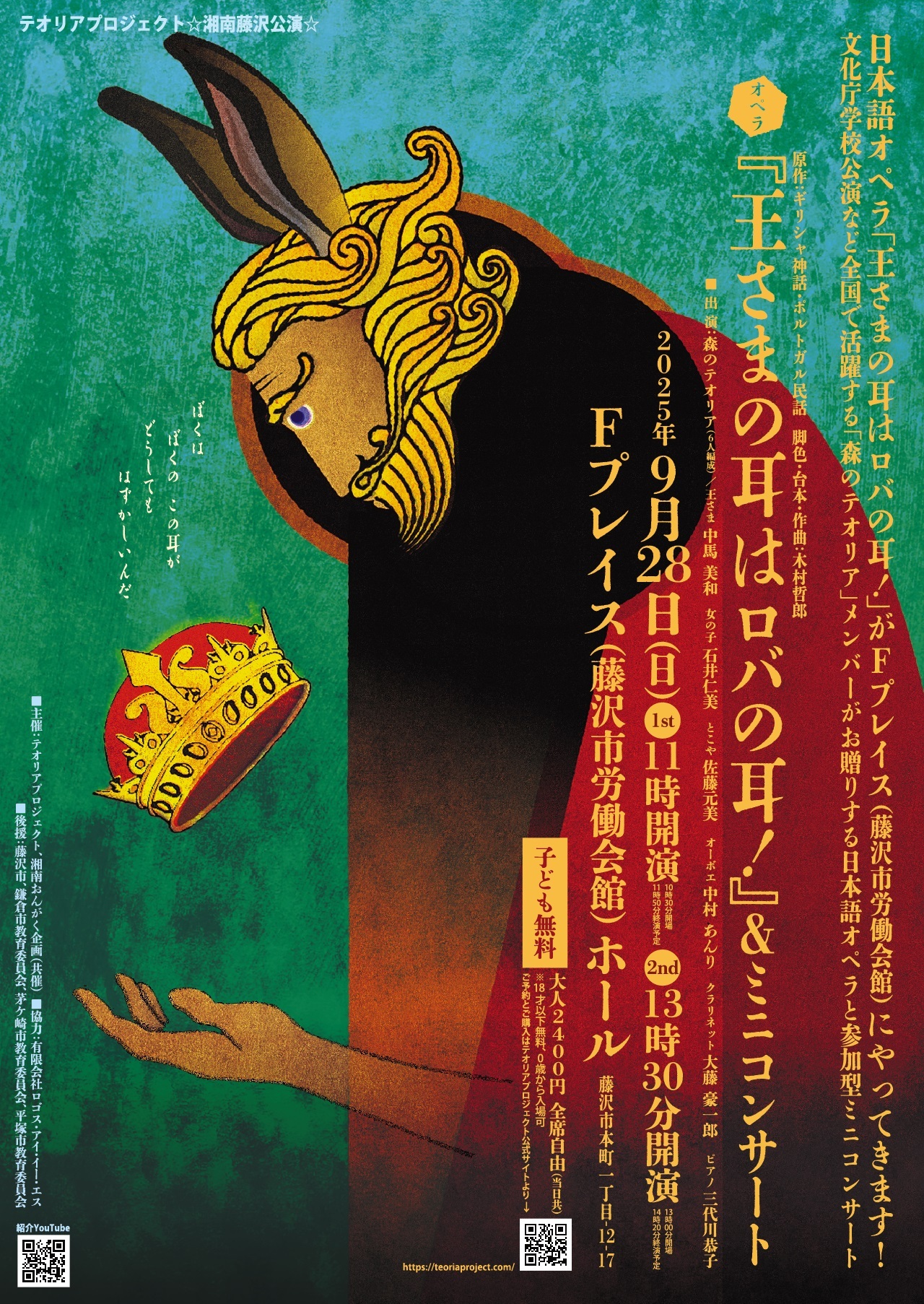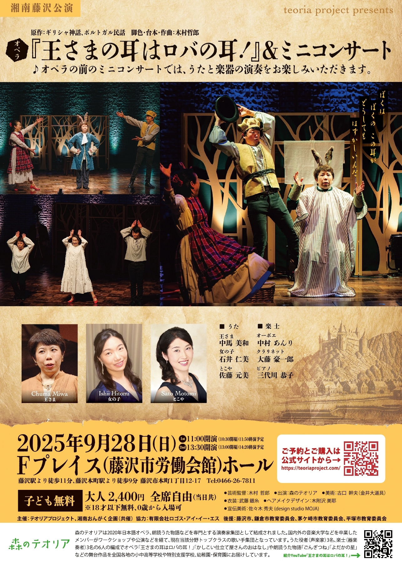 テオリアプロジェクトは、2025年秋、神奈川・埼玉・千葉の3都市でオペラ「王さまの耳はロバの耳!」を計7公演開催します。
