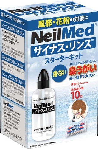 サイナスリンスは大人用(推奨年齢:5歳以上)で両鼻240mlの洗浄量の鼻うがいキットです。