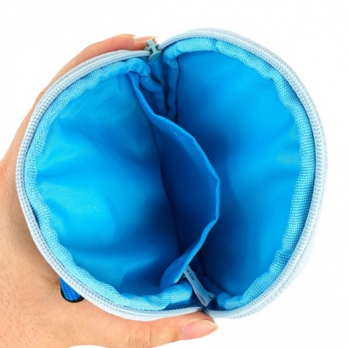 ファスナーを開けると、中には仕切りもあります。大きく開くので、出し入れもスムース♪鮮やかなブルーで見やすいですね。