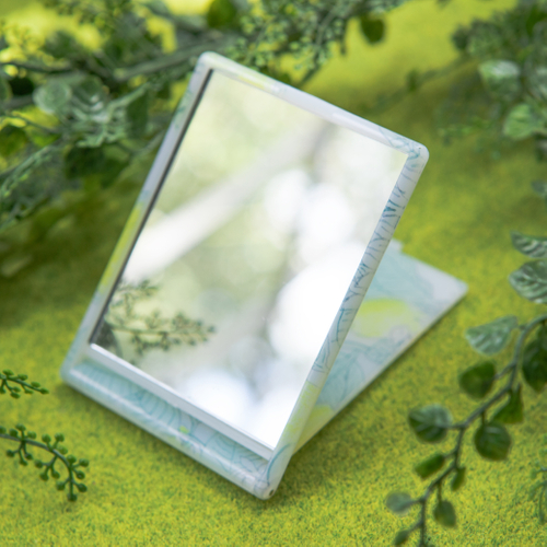 手のひらサイズのコンパクトミラー。カバンに忍ばせていつでも身だしなみをチェック!