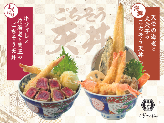 株式会社カフェ(本社:大阪市、代表取締役社長:鳥澤 仙好)は、直営レストラン「天ぷら こぎつね(枚方市・枚方モール内)」において、2種類の天丼を2025年10月29日(水)から期間限定で販売いたします。