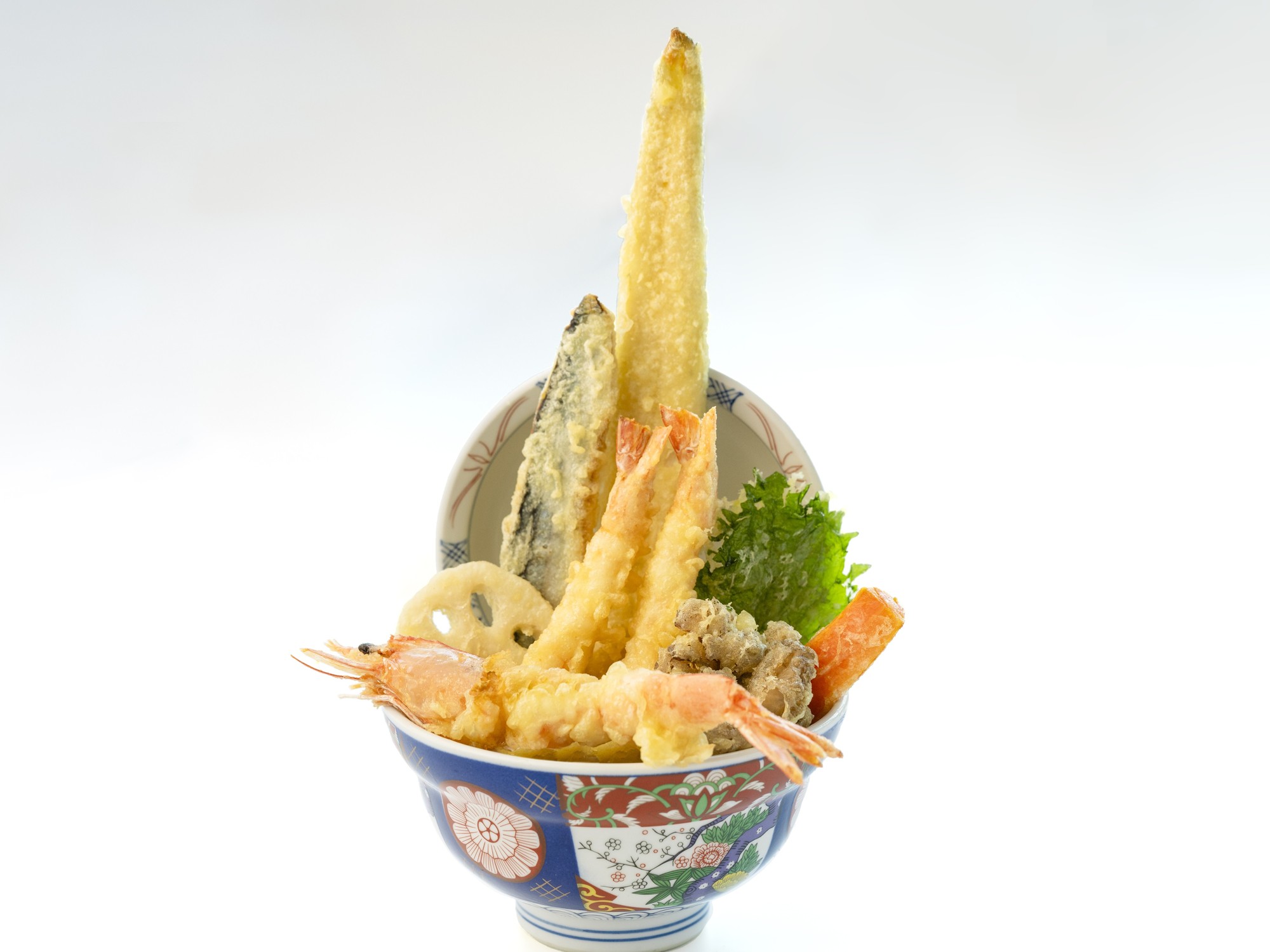 具 材 : 天使の海老1本、大穴子、花海老2本、秋刀魚、舞茸、れんこん、にんじん、大葉