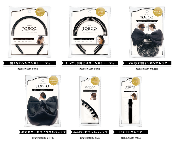そこで、ビューティーワールドは派手な髪型ができない働く女性が手軽に、すっきり髪をまとめることができ、なおかつオシャレに見えるヘア小物を考えました。「JOBCOージョブコ」というブランドを立ち上げ、アイテムを提案いたします。