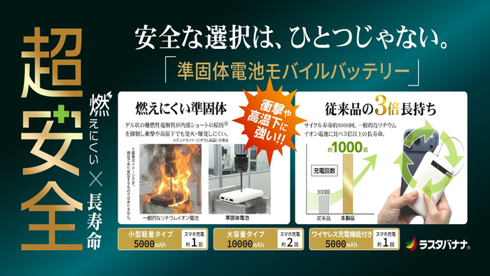 燃えにくい×長寿命!超安全な「準固体電池モバイルバッテリー」の発売を開始!
