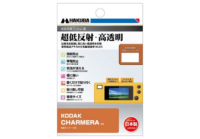 ハクバ写真産業株式会社(本社:東京都墨田区)は、業界最高クラスの超低反射・高透明さを誇るデジタルカメラ用液晶保護フィルムにKODAK「CHARMERA」専用1製品を追加いたします。