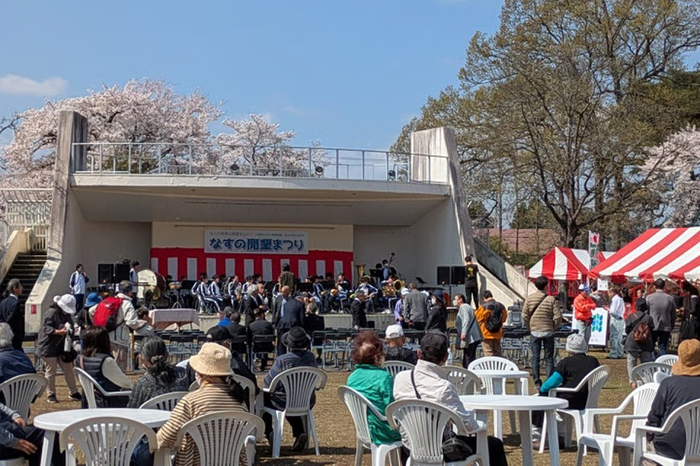 なすの開墾まつりは、4月15日に烏ヶ森の丘上で那須疏水の開削起工式が行われたことを記念して開催しています。