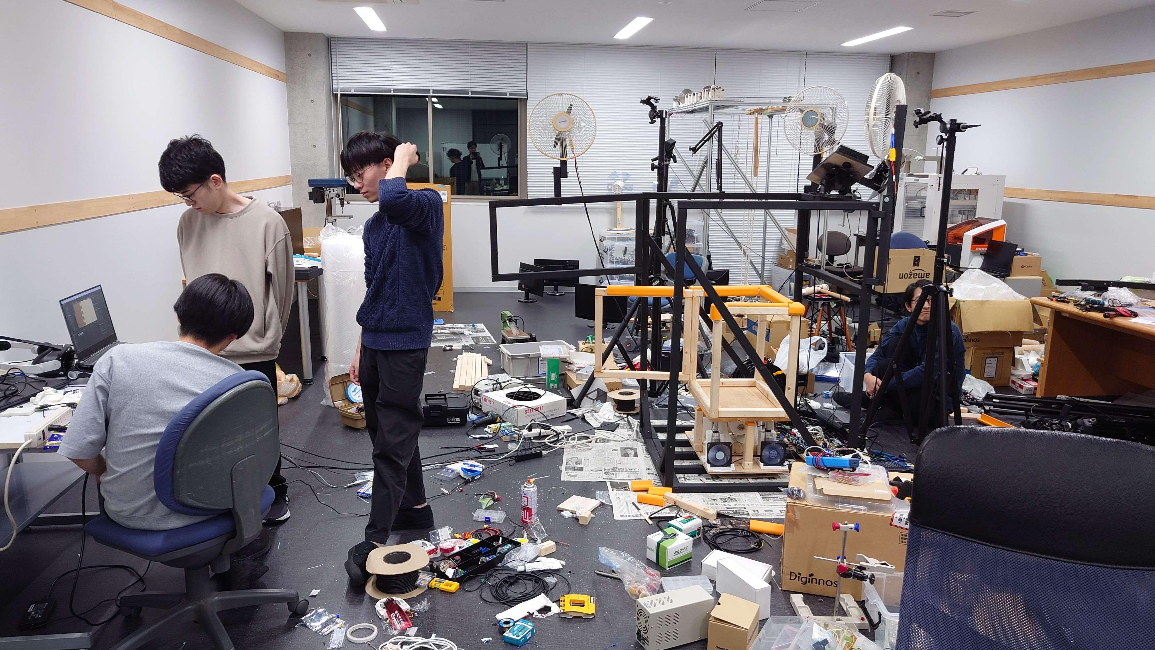 最後の最後、「めい迷路ろ」の傾斜を再現するキモの部分を仕上げる作業が残っていたのです。メンバーは最後の仕上げのために研究室に残り、全員の頭の中には「間に合わせるぞ!」という強い決意。間に合わせるためにはどうするのかを一人ひとりが考え行動しました。