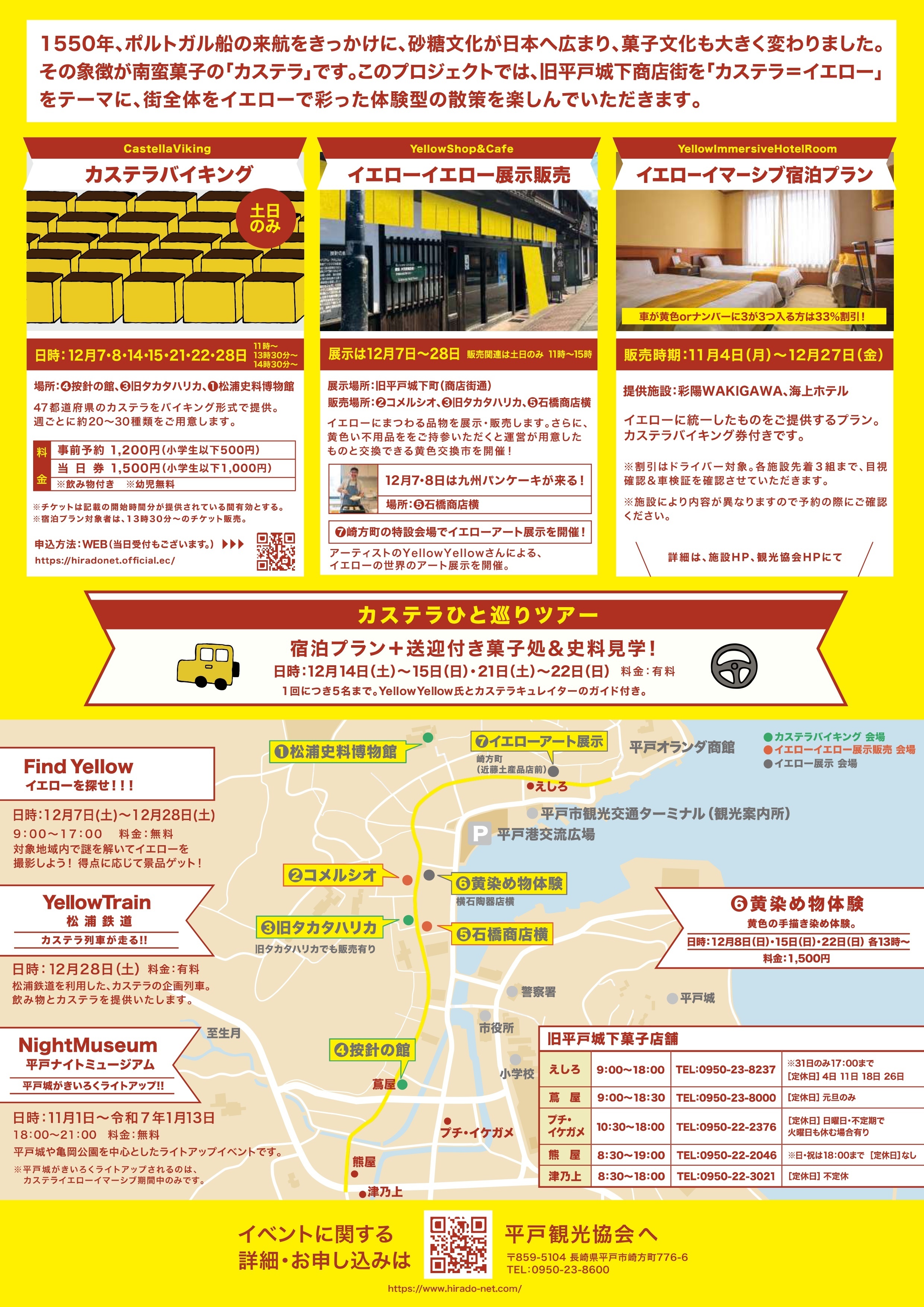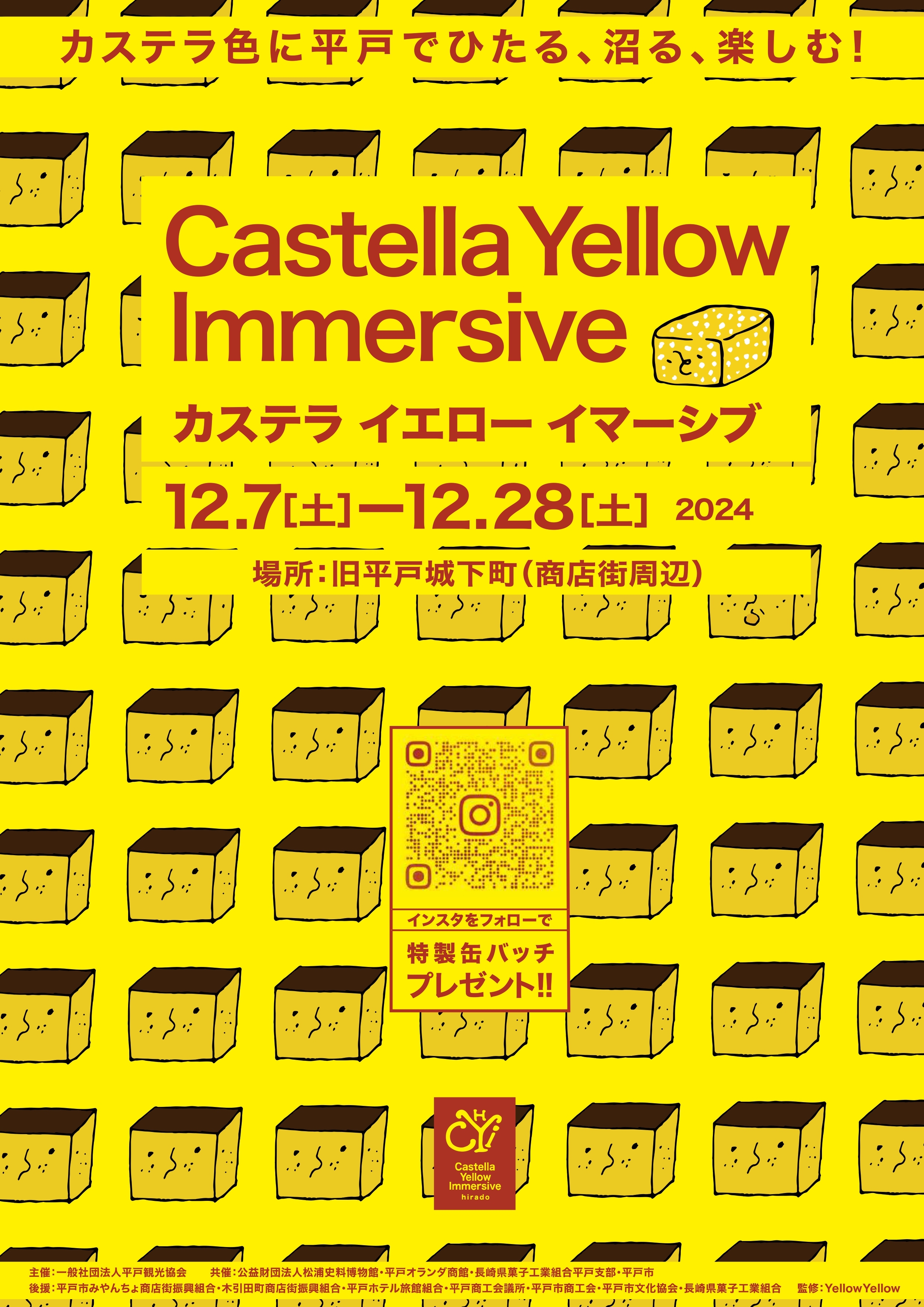 一般社団法人平戸観光協会は、アート展示、宿泊プラン・ツアーなどが盛りだくさんのイベント「カステライエローイマーシブ」を旧平戸城下町(商店街周辺)にて2024年12月7日(土)~28日(土)開催いたします。