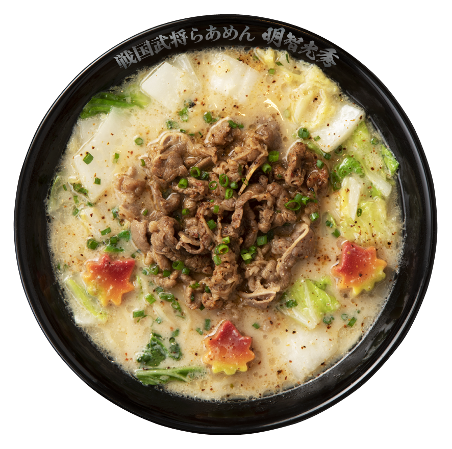 「ラーメンは世界に誇る日本のエンターテイメントである」をコンセプトに「らあめん花月嵐」のブランド名で、234店舗(海外23店舗含む)を運営するグロービート・ジャパン株式会社(本社 東京都杉並区)は、『戦国武将らあめん 明智光秀』を2020年11月4日(水)より期間限定で販売します。