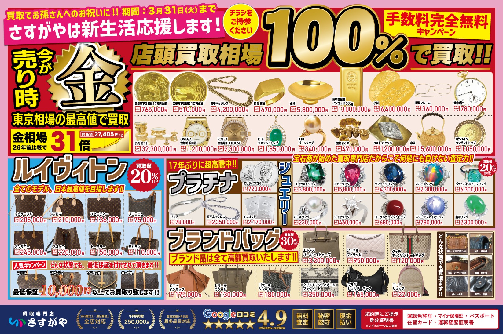対象:買取専門店さすがや ※一部対象外店舗有 詳しくはお近くの店舗へお問い合わせください