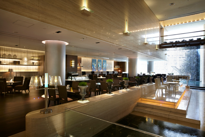 心地よい水音を奏でる滝が流れ、開放感溢れるメインロビーに面したティーラウンジ ベルクール。11月中旬からは、赤と白を基調とした北欧風のクリスマスツリーもメインロビーに登場予定です。煌めくツリーを眺めながら、心温まる時間をお過ごしください。
