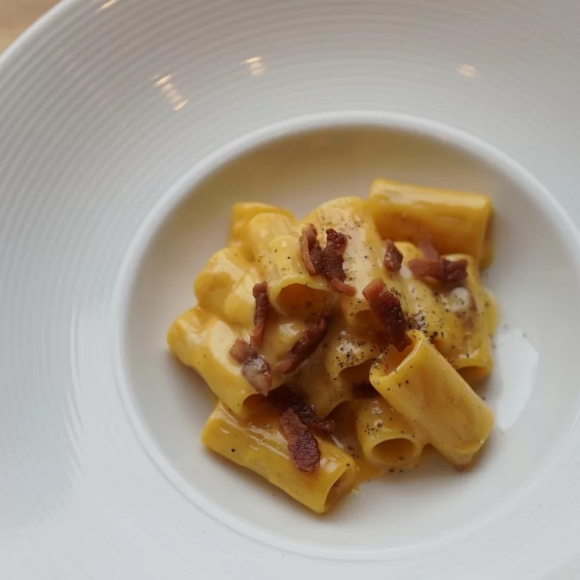 2. リガトーニ・アッラ・カルボナーラ(パスタガロファロ・リガトーニ使用 ※日本未発売)
