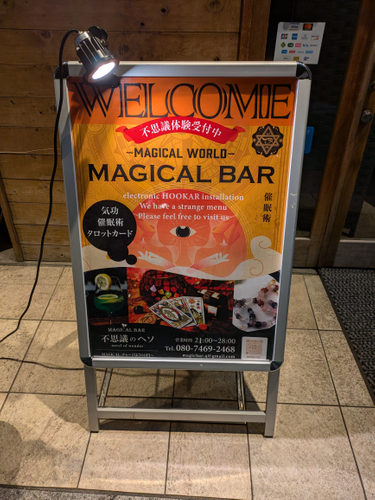 ※本郷三丁目に移転しました。の異国情緒漂うイスラム横丁近くに、謎の催眠術師エンドーが率いるマジカルバー「不思議のヘソ」が移転オープンしました。