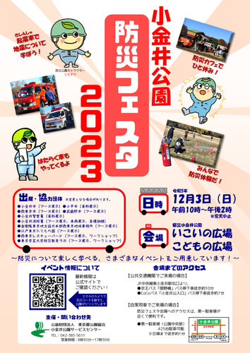 12 月3 日(日)に小金井公園では防災について楽しく学べるイベント「小金井公園防災フェスタ2023」を開催します!