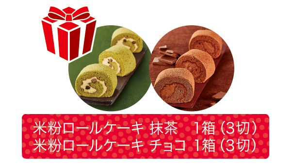 米粉ロールケーキ 抹茶、チョコ 各1個プレゼント