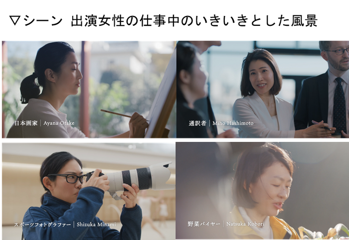今回の新CMのテーマは「つづけ、自慢の私。」、がんばる女性を応援します。さまざまな専門分野で実際に活躍されている4名の女性にスポットをあて、彼女たちの仕事風景や日常をいきいきと表現しています。当社は食の提案を通じて、「理想を忘れず自分のスタイルを大事に生きる」人々を応援してまいります。