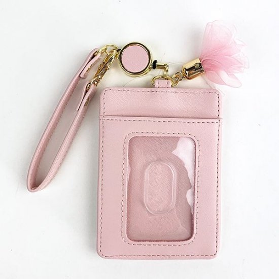 リールストラップ付のパスケースもご用意しています。こちらにも、花びらのチャームがアクセントになっています。