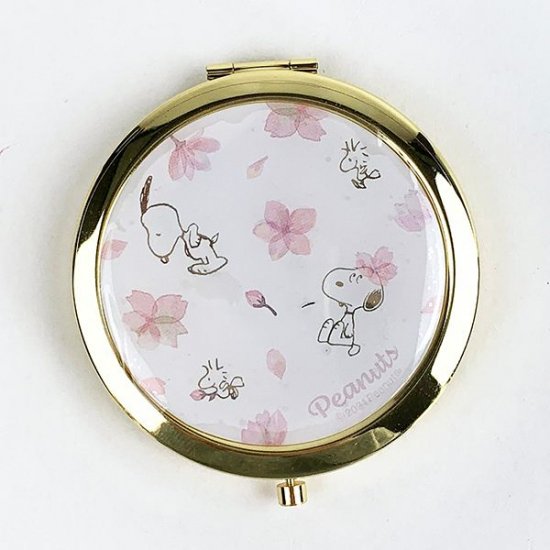コンパクトミラーも、こんなにかわいくなりました♪水彩画のような優しいタッチの桜の花と、キュートなスヌーピーのコラボ♡
