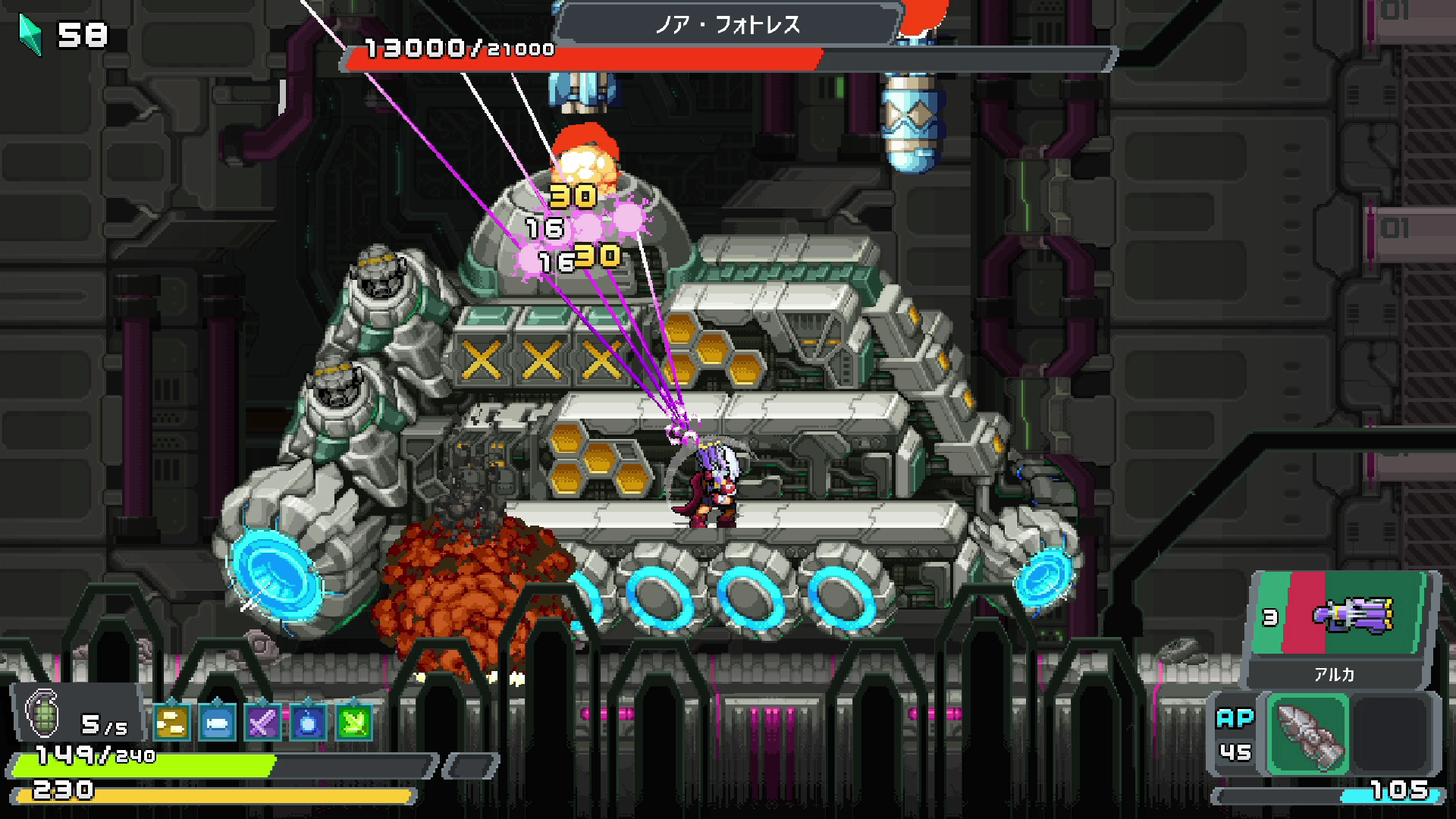 ・2つの難易度モードに加え、ボス戦を再現できるボスラッシュモードを搭載