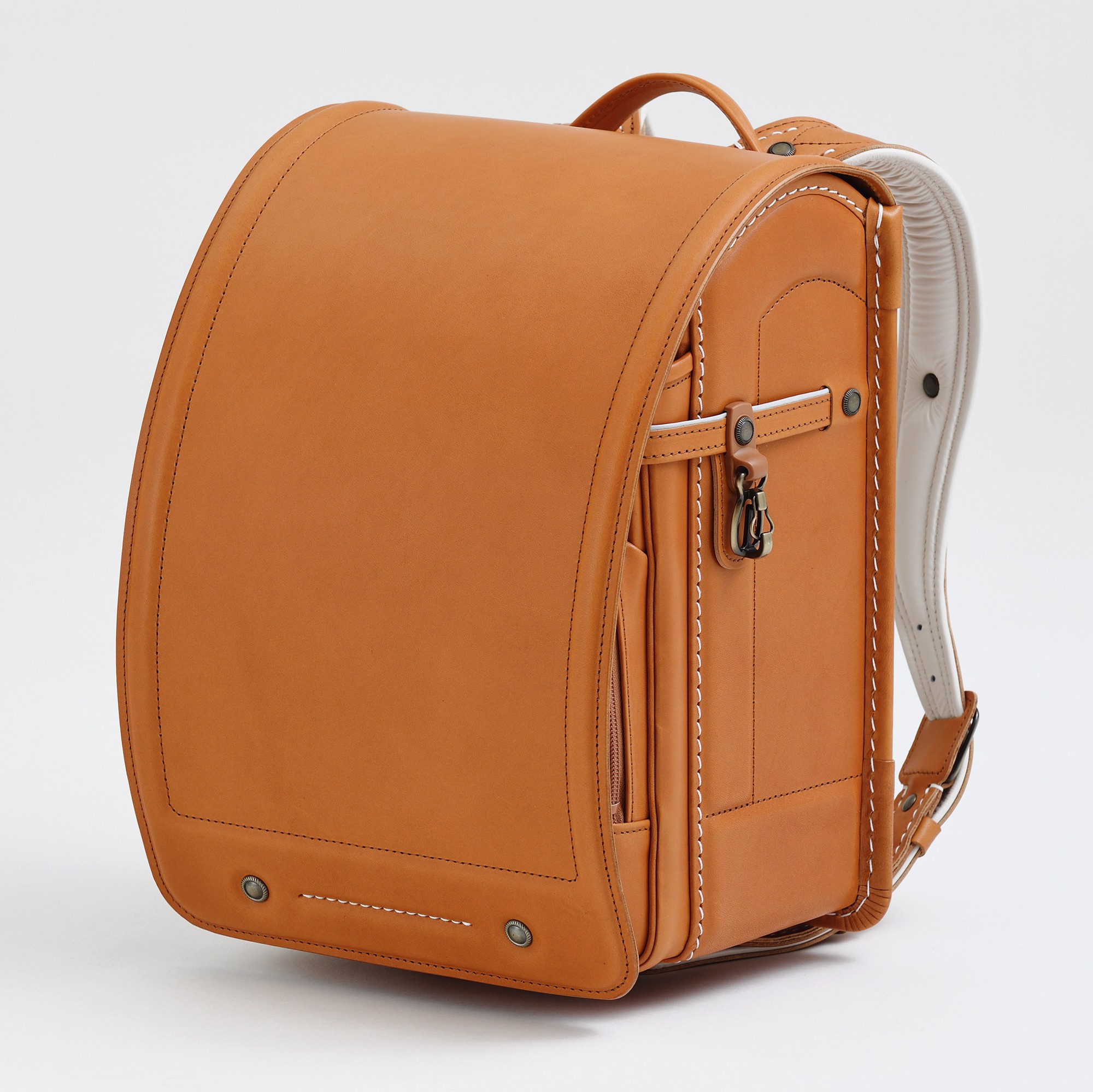 また、丈夫さと軽さを両立した仕立てにより、耐久性と背負いやすさを実現。学習院型の形状で出ているへりが側面や底面を擦れや衝撃から守ります。さらに、10mm厚の衝撃吸収Mクッションを使用することで(スキップ除く)、負担を軽減する快適な背負い心地を実現しています。