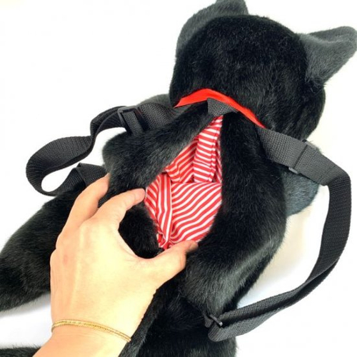 まず最初にご紹介するのは、ぬいぐるみにもなるジジのリュックサックです。赤いリボンに大きなおめめ、ふわふわ黒いしっぽまでしっかり再現されています。よく見るとちゃんとおひげも付いているんです♪