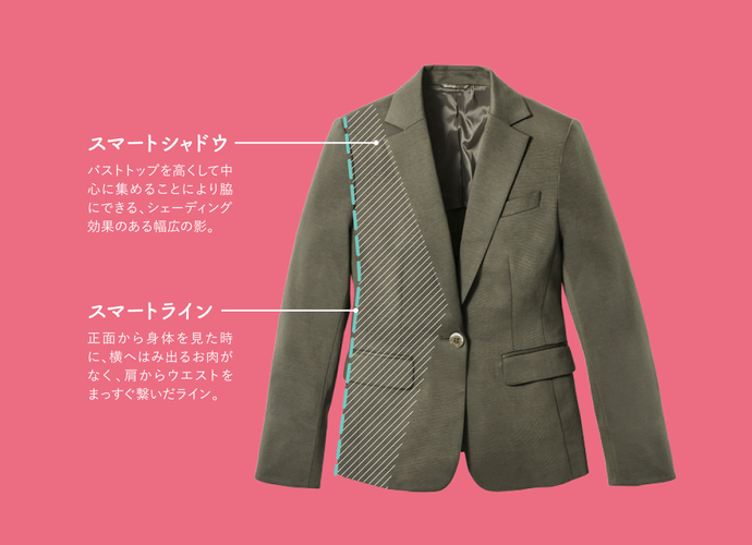 ピーチ・ジョンの大人気ブラ「スマートブラ」の構造を応用して、シャドウ&ライン効果で着るだけでやせ見え。