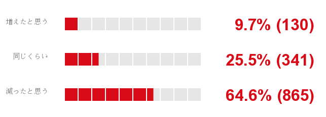 Q1. 2020年、2021年の同時期に比べ、2022年に結婚式の招待は増えたか?