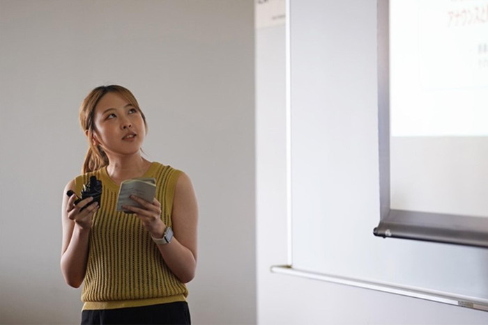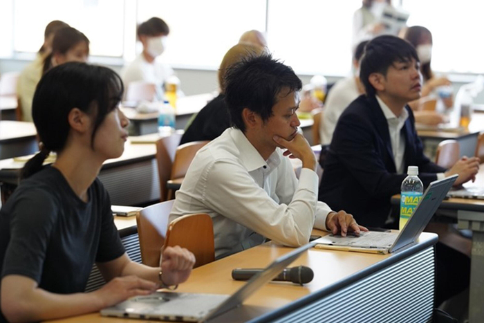 多種多様な企画案がそろい、選ばれた7案をプレゼンテーションする発表会を7月4日に開催されました。ひとり3分の持ち時間で順番にスライドを使って説明し、名古屋鉄道の方からの質問に対応しました。緊張しつつも、準備と練習の成果が発揮されました。これから実現に向けた検討が進められるため詳しい発表内容は書けませんが、瀬戸線沿線の町の魅力を引き出す案や、瀬戸線の車両でこれまでにないイベントを実施する案など、とても興味深いものばかりでした。深掘りしたデータを丁寧に整理して論理的に具体的な企画案におとしこんだものが多く、最後の講評では学生たちの発想力や分析力が高く評価されました。