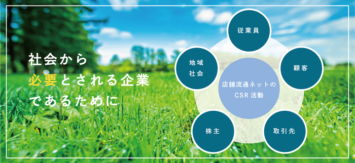 飲食店の出店支援事業をビジネスの柱とする店舗流通ネット株式会社は、「明日の街、もっと楽しく。」をコーポレートスローガンに掲げ、人と街に関わるすべてのことを総合的に支援することで、より良い未来を実現しています。ESG企業として、当社が関わるすべてのステークホルダーに真摯に向き合い、公正・誠実な事業活動を行ってまいります。