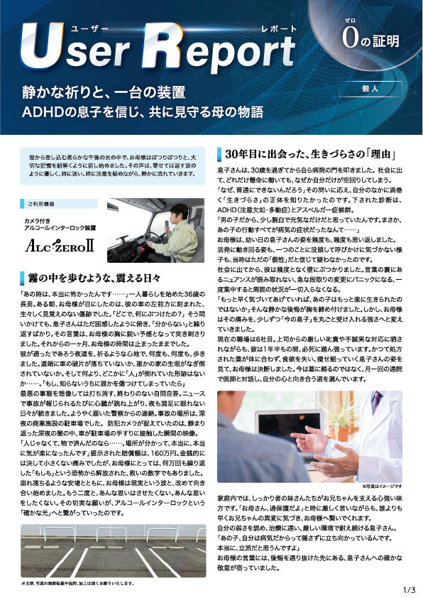 自動点呼システム、運行管理システム、安全運転管理システム、労働安全衛生システムを開発・販売する東海電子株式会社(本社:静岡県富士市、代表取締役:杉本哲也)は、アルコール・インターロック装置「ALC-ZEROⅡ」を個人のクルマに導入した家族へのインタビューをもとに、ADHDの特性を持つ息子を支える母親の実例を公開しました。