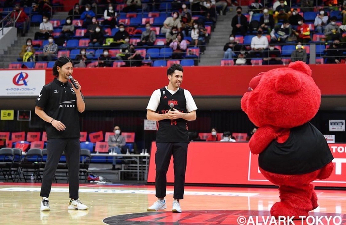 @zeekstartokyo レミたんからルークにお願い🤲アルバルク東京のホームゲームで試合の告知させていただきました😄#アルバルク東京 #ルーク #ジークスター東京 #東長濱秀希 #土井レミイ杏利 @alvark_tokyo