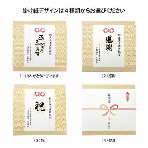 ・カスタマイズ自在:4種類の掛け紙から選択し、希望テキストを入力可能。