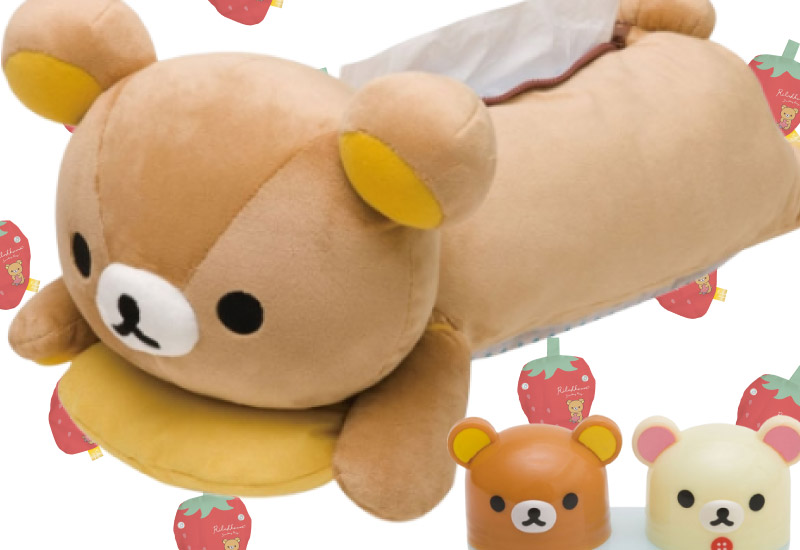 最初からかわいさ全開のグッズ、ぬいぐるみティッシュボックスケースです。ゆるキャラリラックマが、ねそべっているぬいぐるみは、そのままでも十分キュートです。クッション部分は取り外せて、クリーナーになっている優れもの。テレビやパソコンの画面をお掃除できちゃうんです。