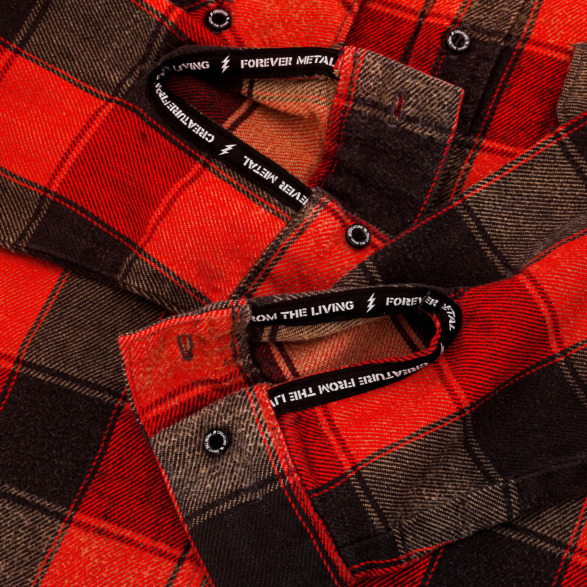 さらに、細部にまで徹底したこだわりを注入。CREATURE FROM THE LIVINGを象徴するオリジナルテープ、専用ボタン、刺繍ワッペンなどを随所に配し、量産では決して表現できないディテールワークによって、Leathers and Treasuresが掲げる哲学「God is in the details(神は細部に宿る)」を衣服という新たなフィールドで体現した作品となっています。