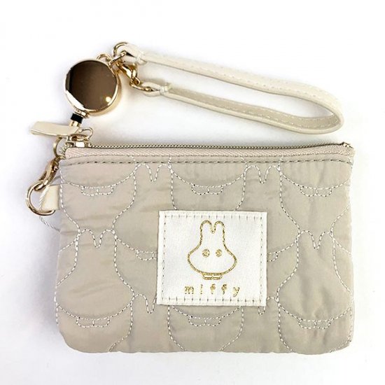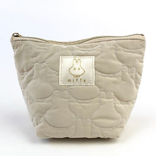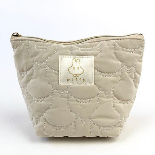 ホワイトですがベージュ寄りで使いやすいカラーのポーチです。このポーチ、ポイントはキルティングの形♪なんと、おばけミッフィーの形がそのままキルティングになっているんですよ!