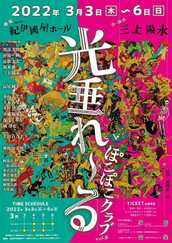 ぽこぽこクラブvol.8『光垂れーる』が2022年3月3日(木)〜2022年3月6日(日)に紀伊國屋ホール(東京都新宿区)にて上演されます。2019年、重要文化財・内子座にて初演を迎え、圧倒的な世界感で人気を博した本作。2020年若手演出家コンクールで最優秀賞を受賞した演出家による大改編を経て、新たな『光垂れーる』が幕を開けます。チケットはカンフェティ(運営:ロングランプランニング株式会社、東京都新宿区、代表取締役:榑松 大剛)にて発売中です。