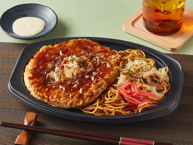 ●商品特長:お好み焼の人気店「ぼてぢゅう」監修商品です。生地のミックス粉、ソース、別添のホワイトマヨソースを監修いただき、店舗の人気メニューを再現しました。お好み焼&焼そばのボリューム満点なセットです!