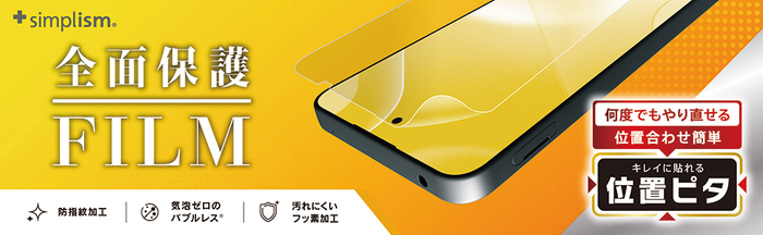 980円(税込)〜と低価格ながらも貼り付けの位置合わせが簡単な「位置ピタ」を搭載。全面保護フィルムで画面をしっかりカバーし、端末を傷や汚れから守ります。