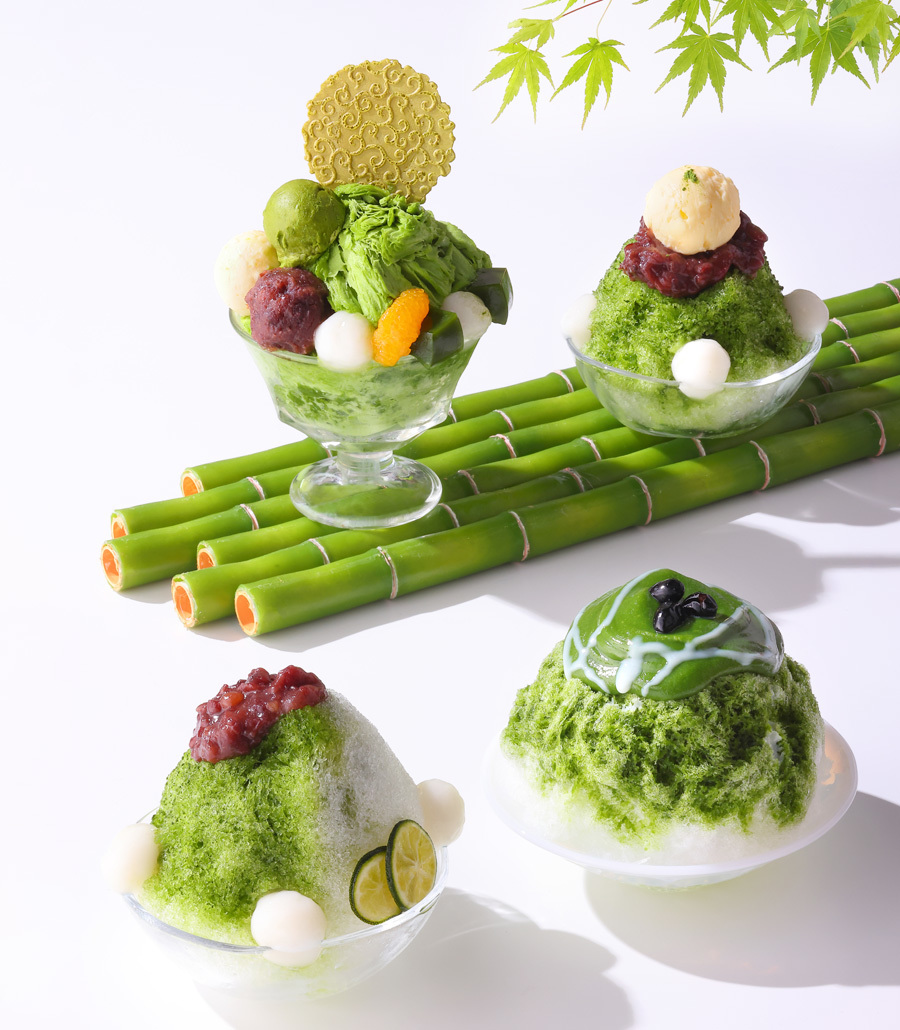 定番の『宇治金時』は、店舗により氷の種類を変え、宇治本店では、昔懐かしいカリカリとした氷で、JR宇治駅前店&祇園四条店は、ふわふわの氷で提供いたします。昨年登場した宇治抹茶パフェをかき氷に見立て、味つき氷を削った『宇治抹茶パフェ氷』含め、お茶屋だからこそできる5種の「宇治抹茶×かき氷」をお楽しみください。