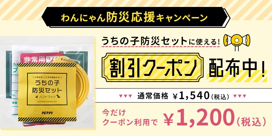 内容:期間中『うちの子防災セット』購入時に適用可能