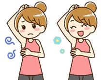 また、皮膚表面のにおいには汗と皮脂、雑菌が大きく関係しています。これらの過剰な分泌や増殖を抑えることはにおいの予防のために大切です。朝、シャワーを浴びて皮脂を洗い流し、体臭、汗臭を防ぐ効果のある薬用石けんなどで一時的に雑菌の繁殖を防いで、皮膚を清潔に保つことがおすすめです。