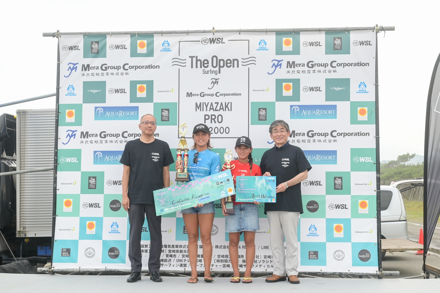 宮崎県で行われたWSL公認大会 「The Open Surfing Miyazaki Series」 QS2000宮崎プロは小林桂と川瀬心那が優勝 日向プロジュニアは佐藤利希、松山黎音が制覇