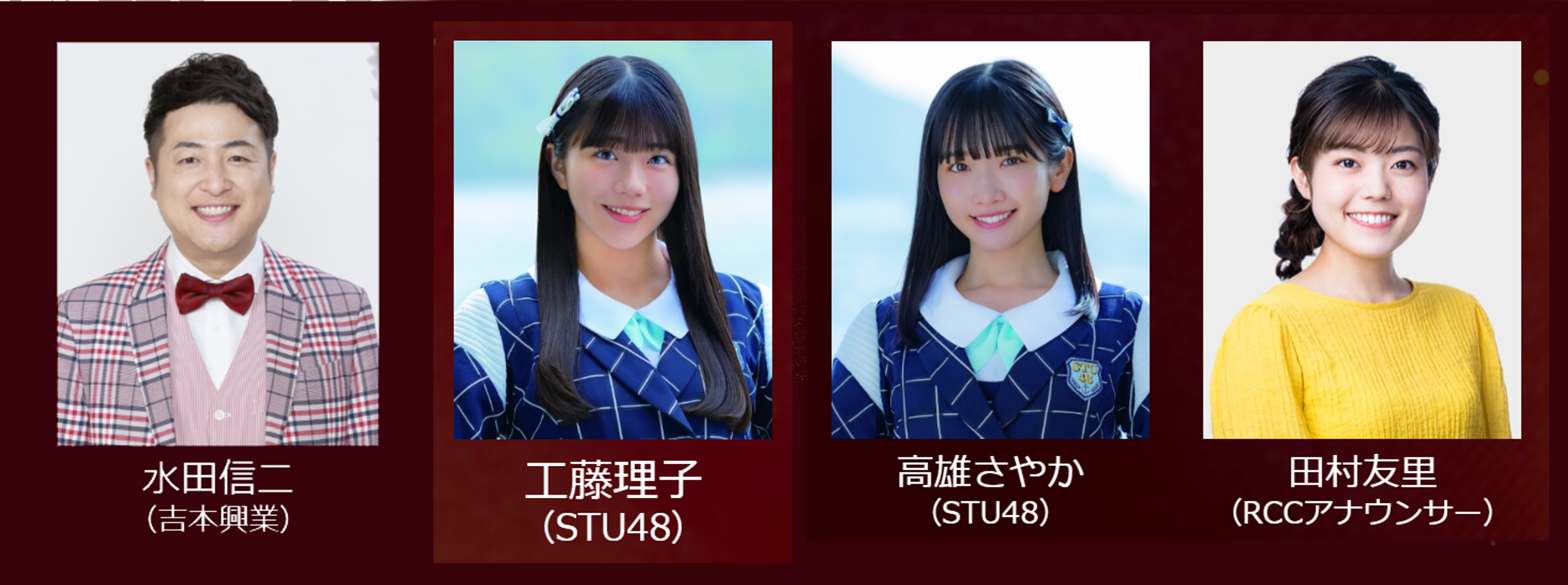 究極のお土産『王土産』の開発めざし各局がそれぞれ出演者と広島の人気店にオファー、番組を制作します。出演は瀬戸内を拠点に活動するアイドルグループ「STU48」を中心に、広島ゆかりのタレント・芸人・著名人など各局多彩な顔ぶれ。はたしてどんな新しい広島土産が誕生するのか?!