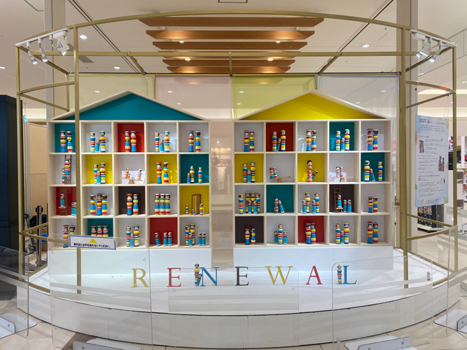 KUZUHA MALLは2023年3月から秋にかけて段階的にリニューアルを実施しています。リニューアルビジュアルには「松屋銀座の地域共創」と青森県黒石市との取り組みにより、津軽こけしの未来へ向けた新しいデザインとしてうまれた「ルビンのこけし」を起用。