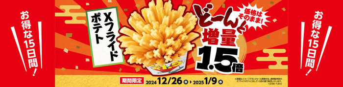 ●企画内容:お値段そのまま、Xフライドポテトの量を1.5倍に増量します。