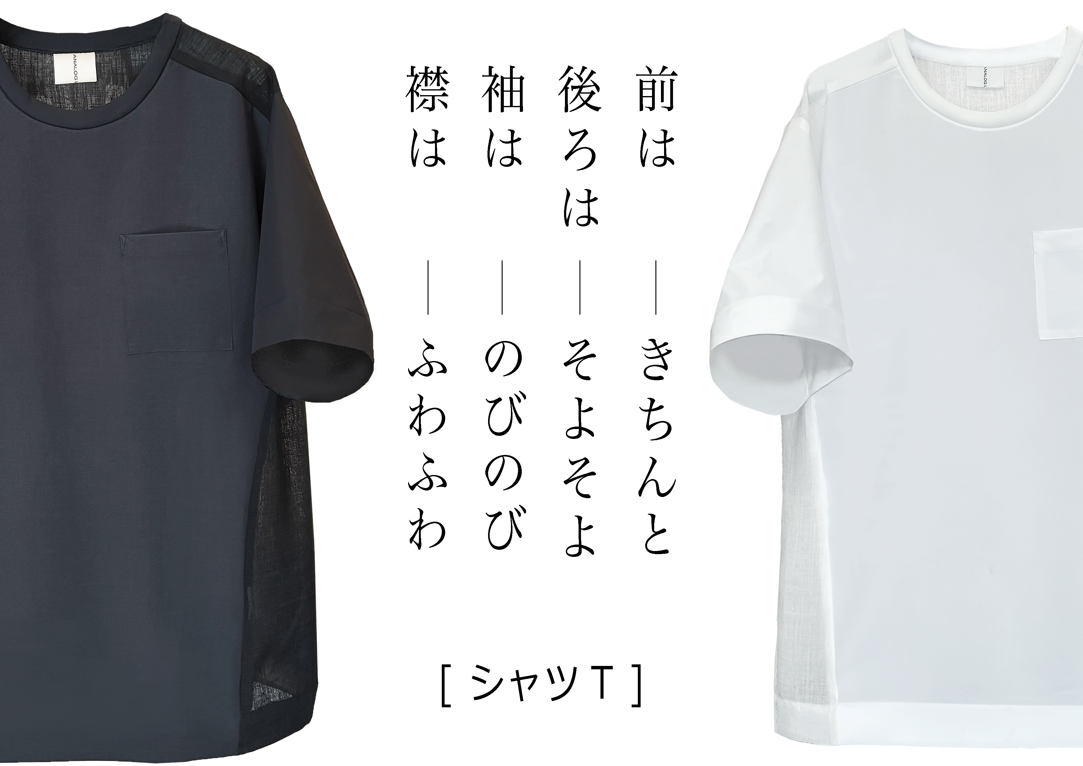 『シャツT』は「シャツ素材で作られたTシャツ」の略で、素材と縫製はシャツ仕様、見た目と着心地はTシャツのハイブリッドモデルで、白シャツの爽やかさと、白Tシャツの快適さの両方を兼ね備えています。これから注目される「スマート暑さ対策」にピッタリのアイテムとして生まれました。