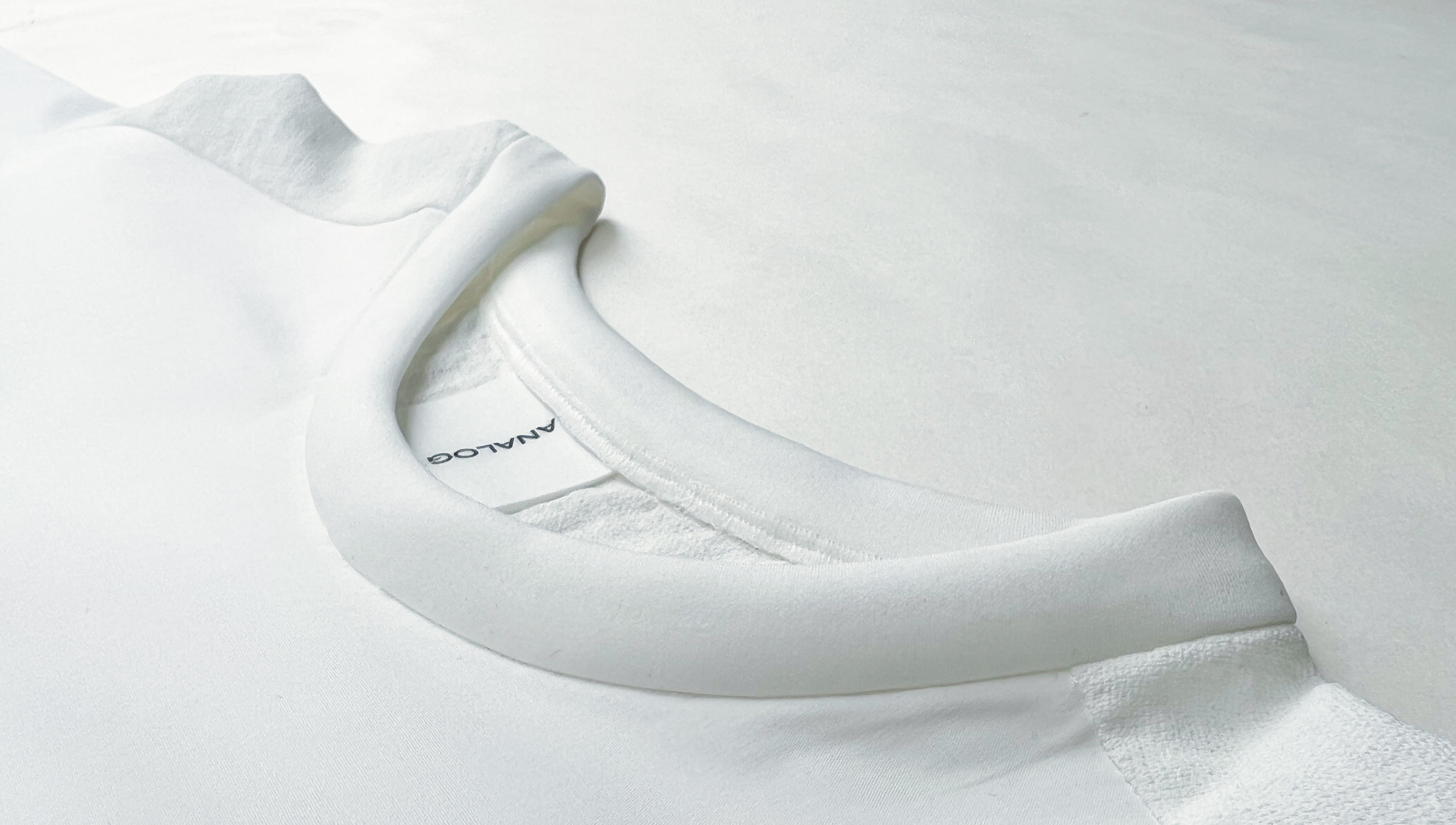 もう一つの注目は襟で、「全体はキレイなのに、襟が伸びて着れなくなる」と言う声から、「マシュマロリブ」という立体的な襟にすることで、丈夫さと、首周りの清潔感を実現しました。