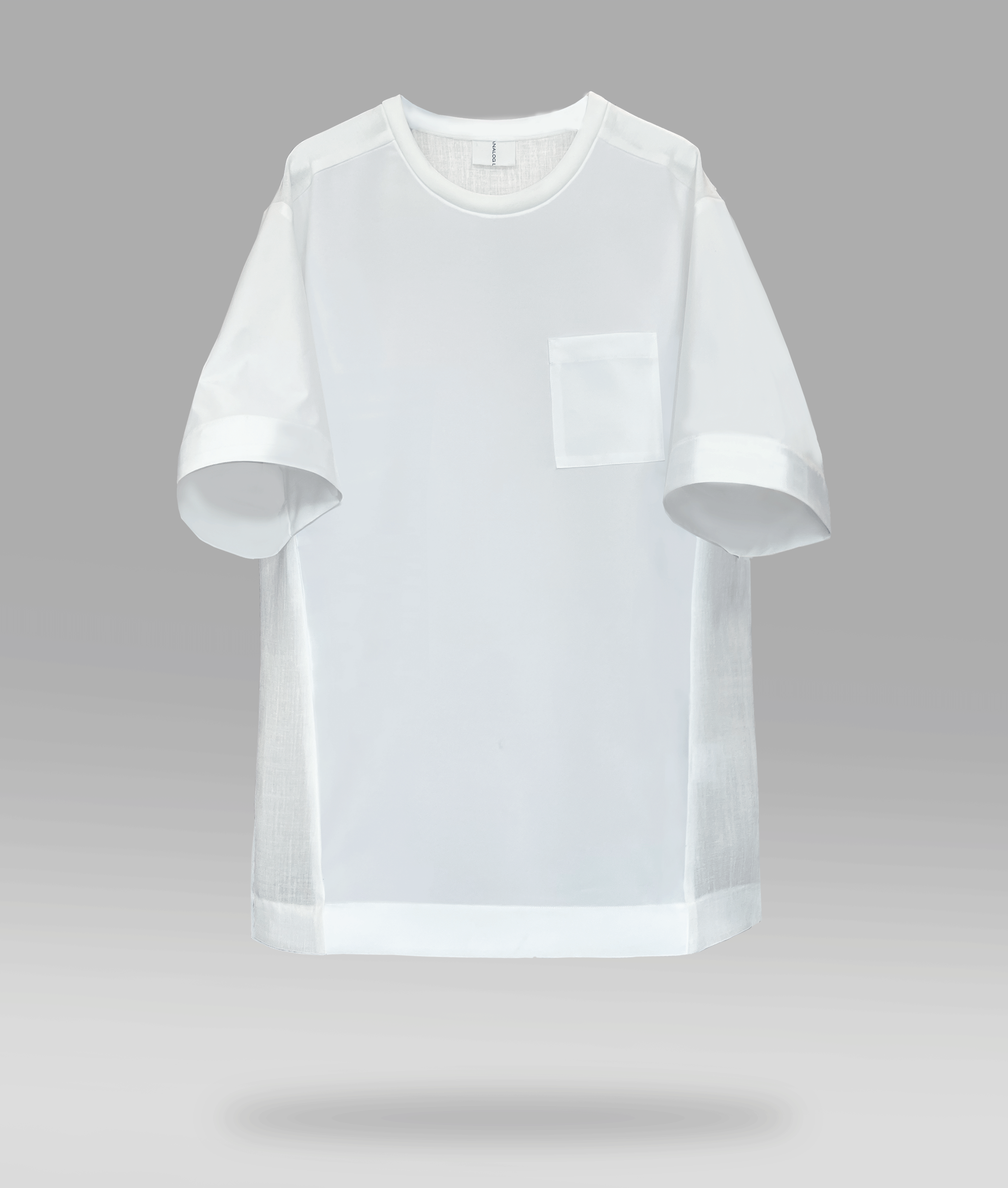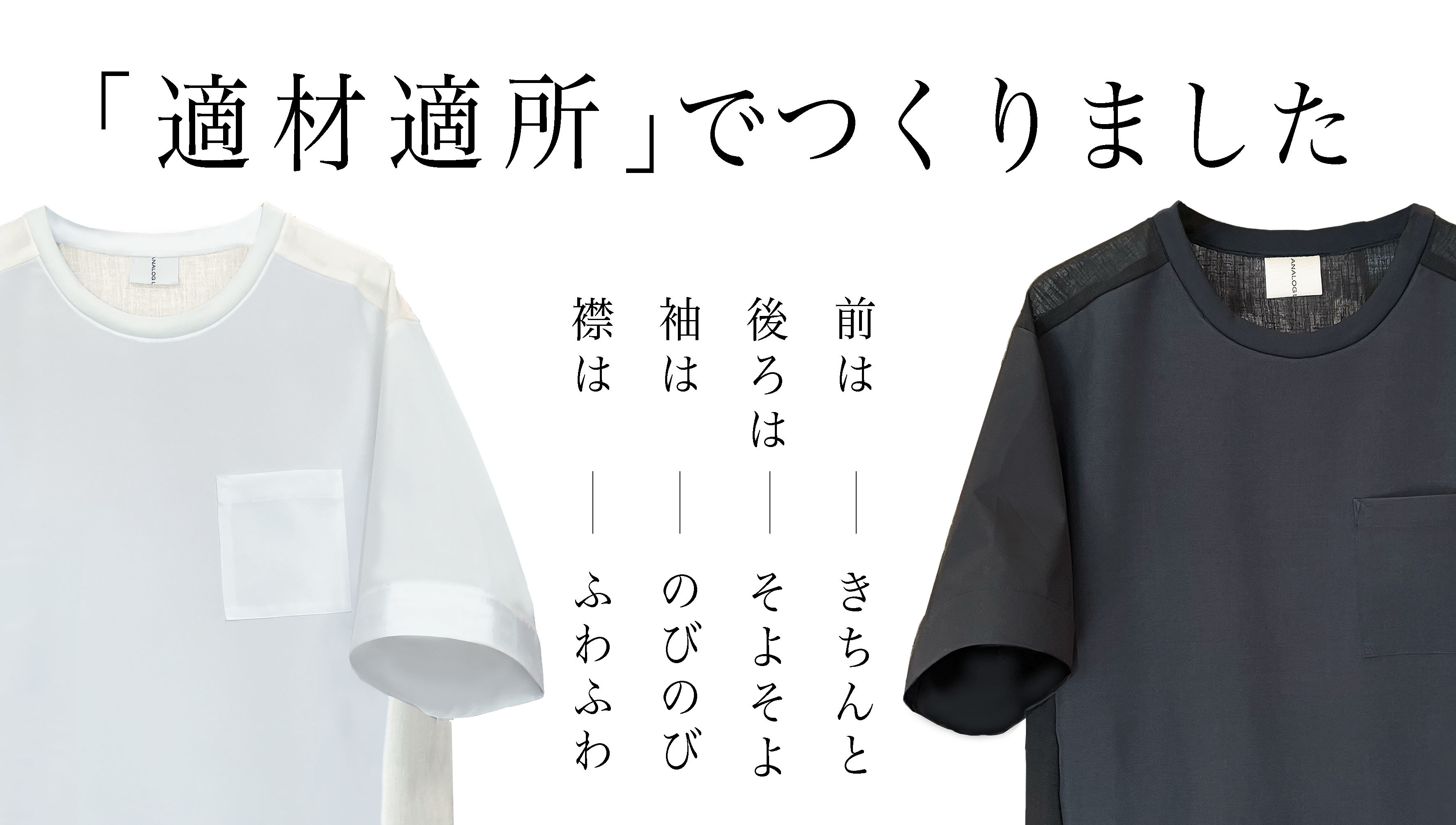 真夏でも爽やかに!1着になんと4つの素材を駆使して ついに「風が通り抜ける通気性」を実現した、新感覚白Tシャツ