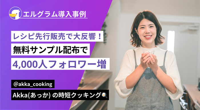 時短料理研究家Akka氏が語るInstagram自動化ツール「エルグラム」活用術。手動DM作業から解放され、時短レシピ販売で購入者1,400名、新規フォロワー4,000人増を達成した具体策をご紹介。